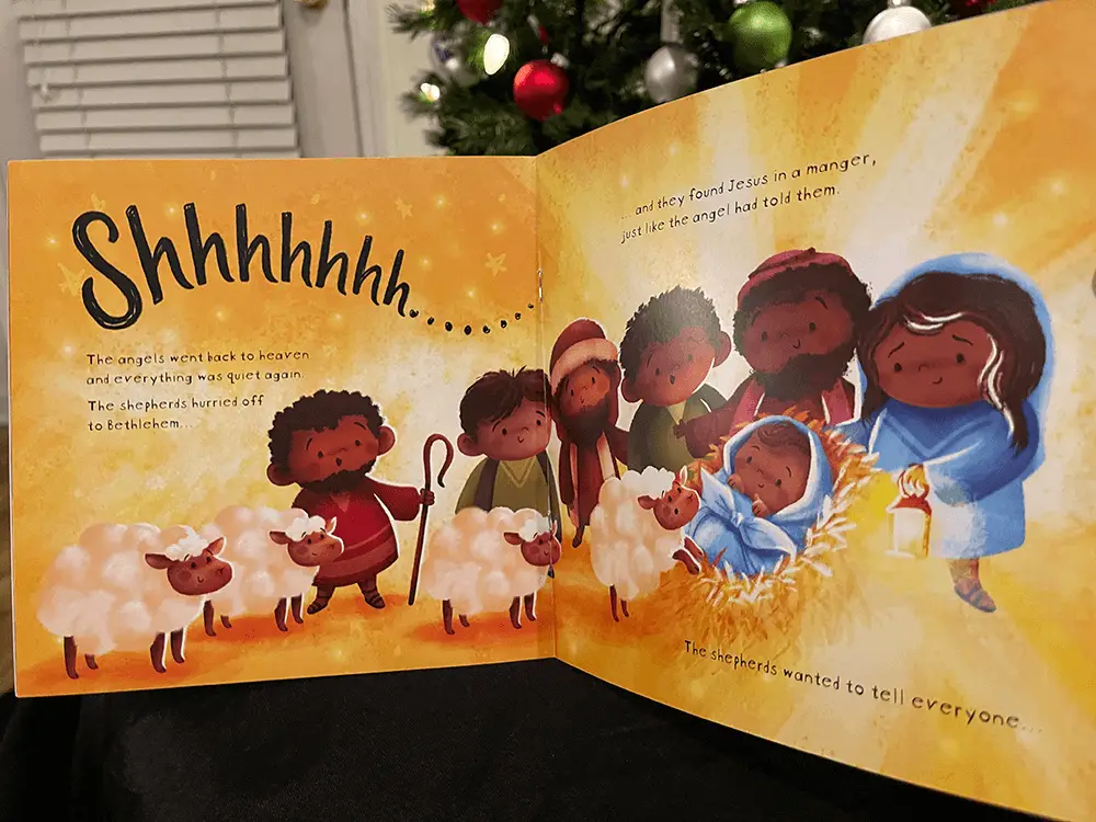 Nate’s take: With it’s dark skinned art and simple phrasing it briefly highlights yet accurately depicts the Christmas story in a LOUD then quiet sing song that would get any preschooler quiet active and giggling while learning about the Christmas story.