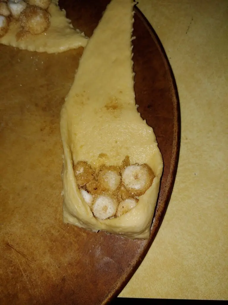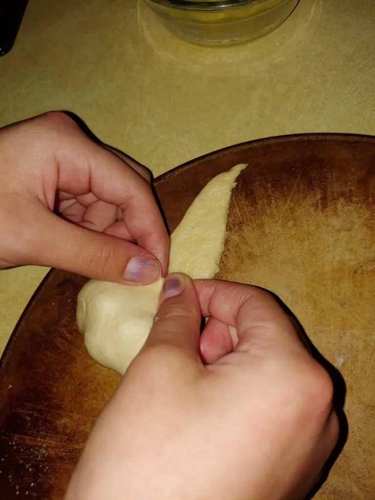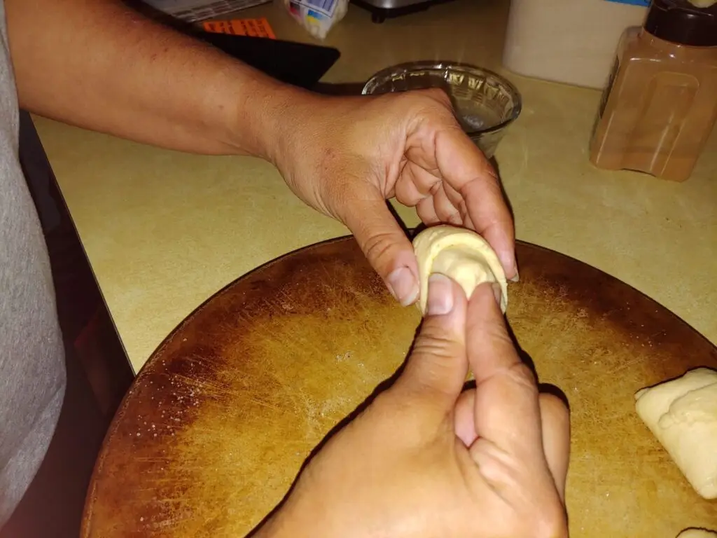 Separate the crescent roll dough into the 8 individual triangles. We suggest using Pillsbury brand if possible. They pinch and stick together better than other brands.