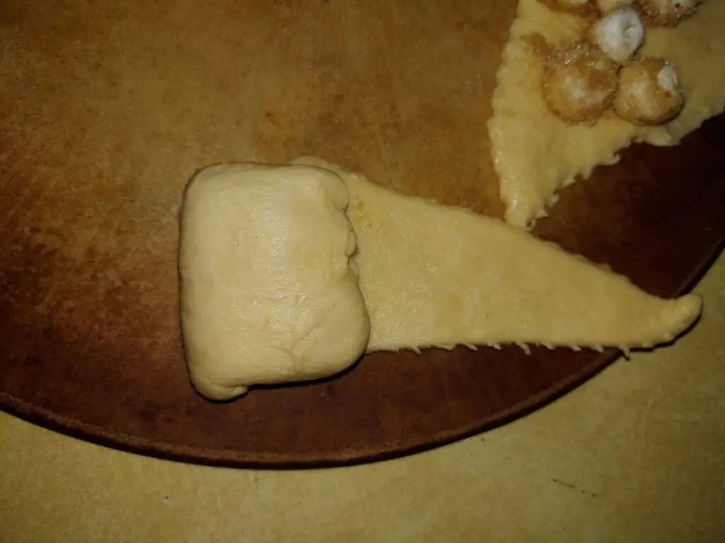- Place marshmallow on the wide end of crescent dough and roll toward the narrow point.